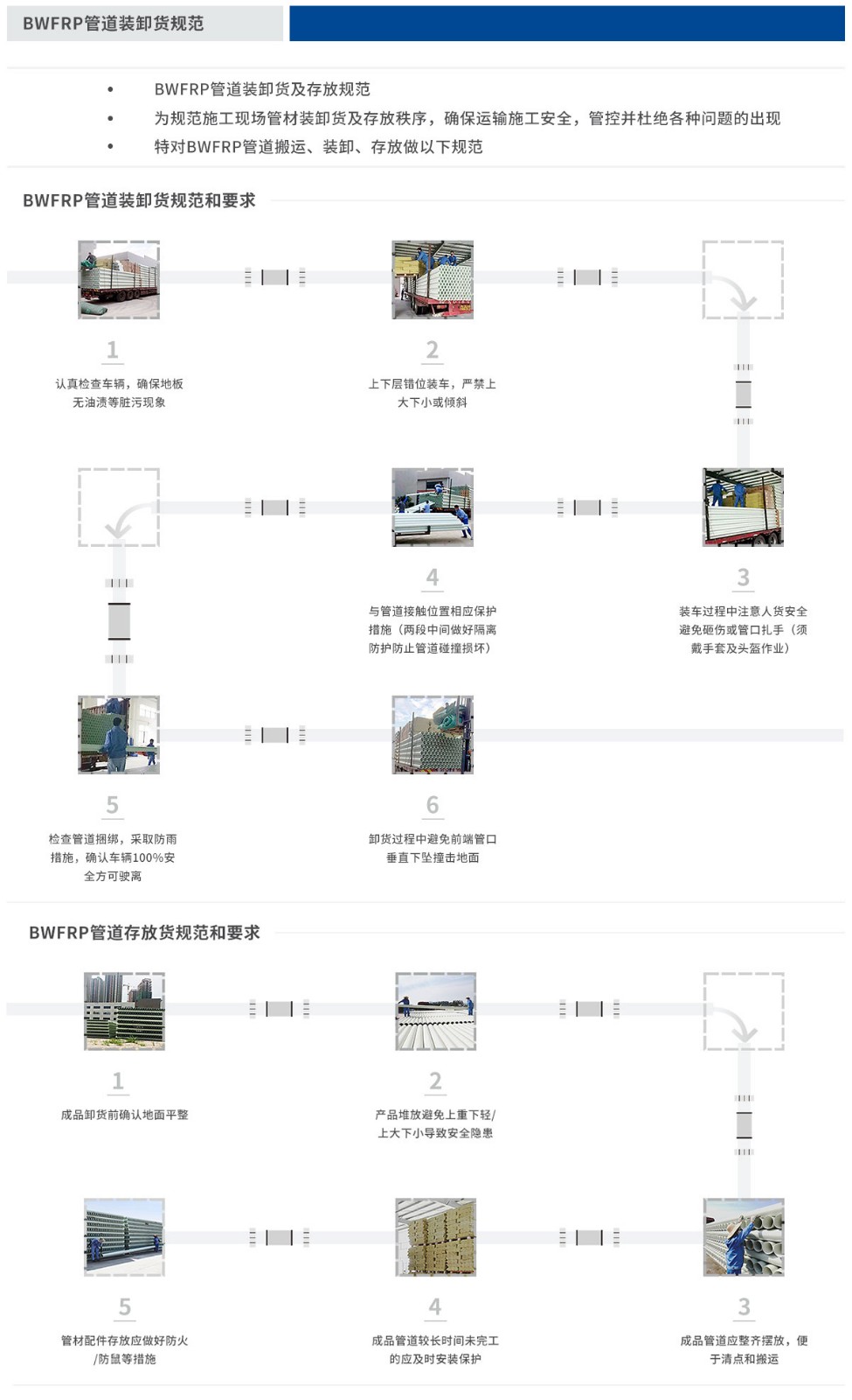 成品管道應(yīng)整齊擺放,便于清點(diǎn)和搬運(yùn)